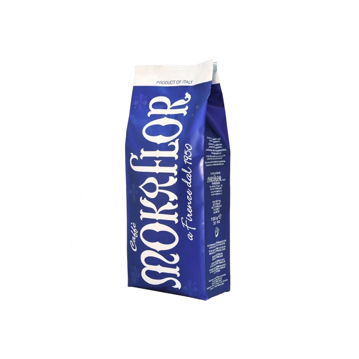 -Mokaflor Blu is een Italiaanse espressomelange met een krachtige body en sterke smaak met een dichte en aanhoudende romigheid.